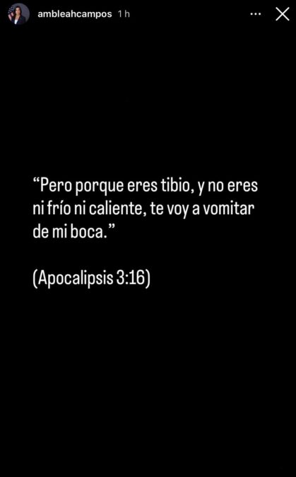 Asimismo, la embajadora compartió una cita bíblica del libro de Apocalipsis (3:16), lo que ha sido leído por diversos sectores como una postura simbólica frente a posiciones consideradas ambiguas o moderadas.